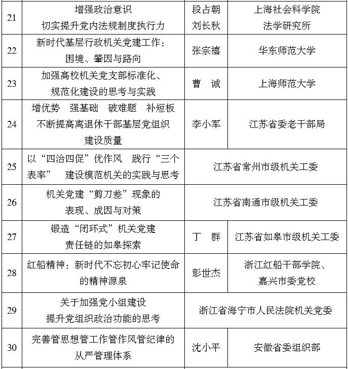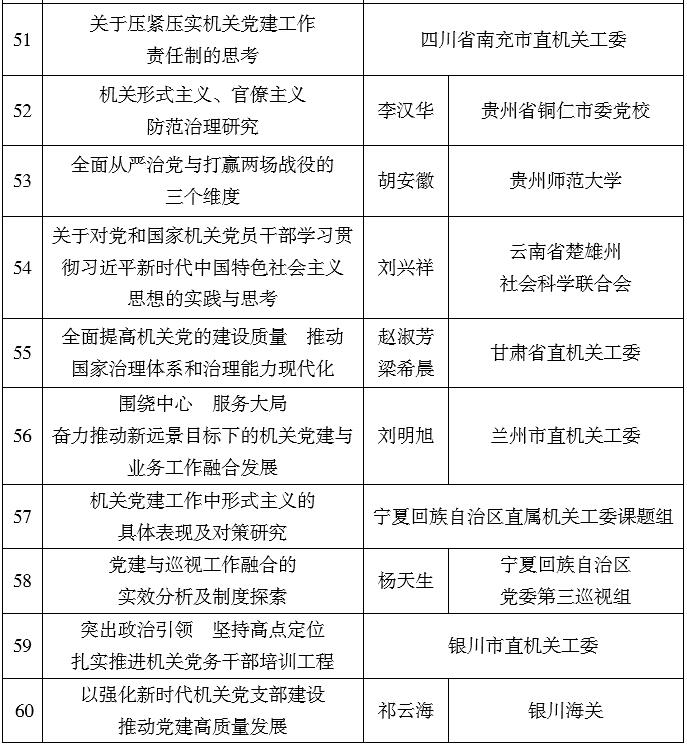 為引導各級機關黨組織深入學習貫徹習近平總書記在中央和國家機關黨的建設工作會議上的重要講話精神,研究解決機關黨建重點、難點、熱點問題,切實發揮好理論對實踐的指導作用,推動機關黨建高質量發展,機關黨建研究雜志社自2020年3月起開展了理論征文活動。截至活動結束,共收到征文600余篇。按照公開、公平、公正原則,雜志社組織評審組經過初評和終評兩個環節對征文進行了評定。根據評審情況,評出60篇優秀理論征文,名單如下。