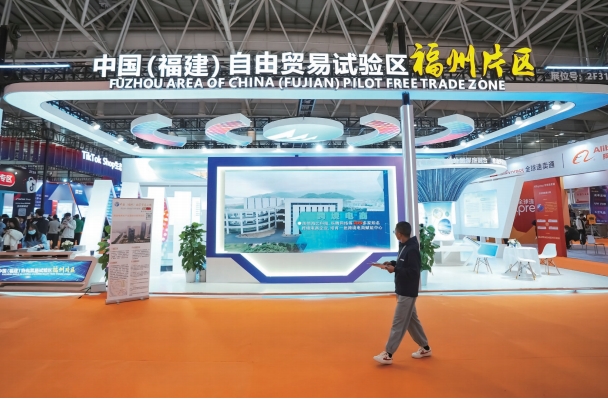 2024年3月18日,第四屆中國跨境電商交易會在福建省福州海峽國際會展中心開幕,中國(福建) 自由貿(mào)易試驗區(qū)福州片區(qū)海絲商城亮相展會。